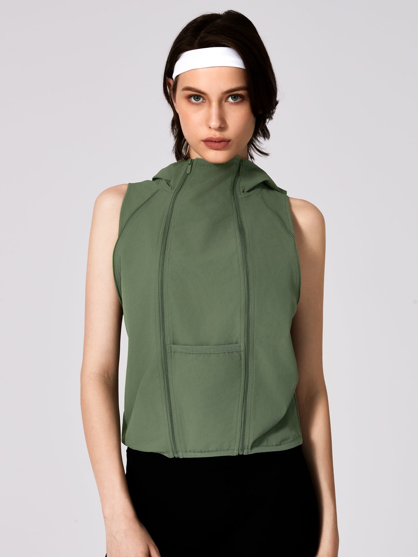 Women's Patchwork Detachable Sleeve Sunscreen Hooded Short High Waist Jacket 2261-YFCXWT Army Green